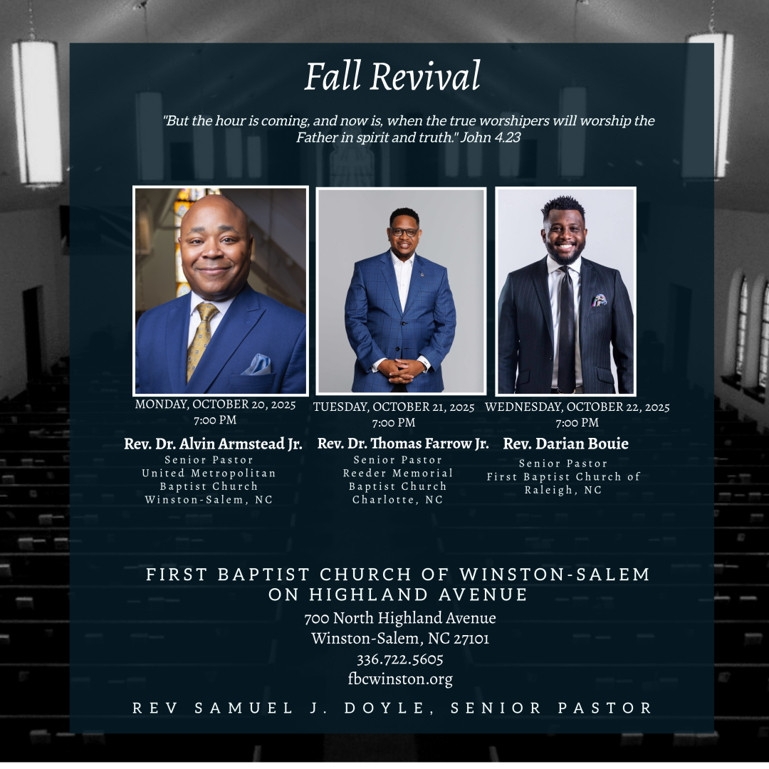 We are pleased to announce our guest speakers for our 2025 Fall Revival! All services will begin at 7:00 p.m. each night.