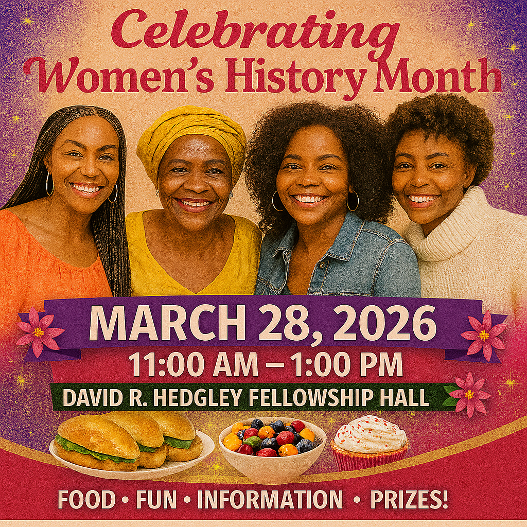 We’re celebrating Women’s History Month with a Church Fellowship on Saturday, March 28 from 11:00 a.m. until 1:00 p.m.